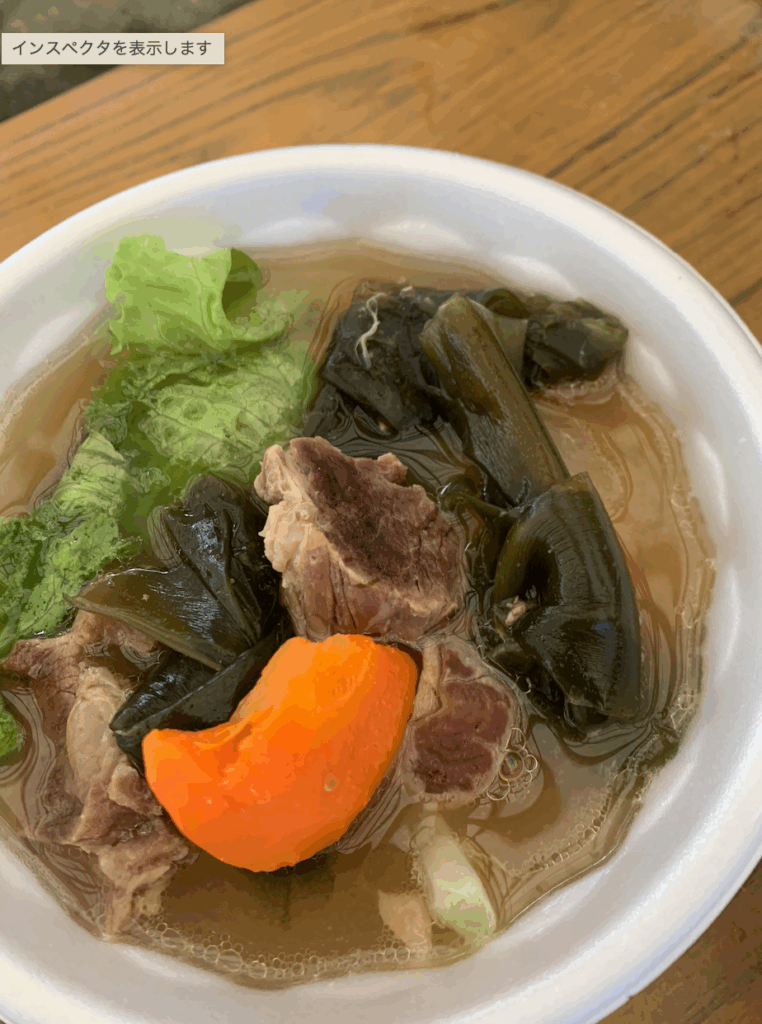 外で食べる牛汁は、気温が少し下がった今の季節にぴったり。身体だけでなく、気持ちまで温まるような時間でした。